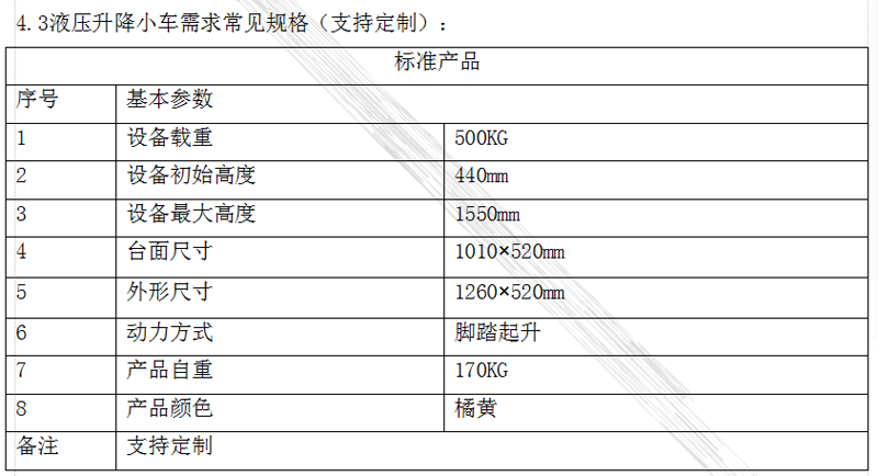 1、產品名稱:腳踏液壓升降小車