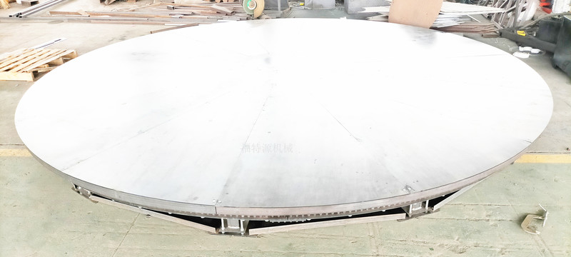 摩擦輪驅(qū)動是旋轉(zhuǎn)臺常用的方式之一,通過旋轉(zhuǎn)驅(qū)動器的工作帶動摩擦輪工作,摩擦輪的工作帶動臺面的旋轉(zhuǎn),該方式噪音小。旋轉(zhuǎn)的中心,無論是圓盤類型還是圓柱類型,都不能負(fù)荷重量。重量一般分布在四周的輪子上,輪子安放于旋轉(zhuǎn)結(jié)構(gòu)或支撐在地面的滑道上。