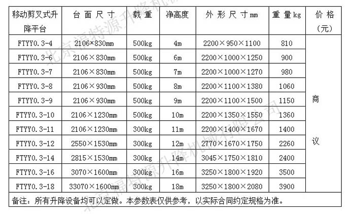 ▍車載式升降機(jī)常規(guī)參數(shù) / Product Parameter