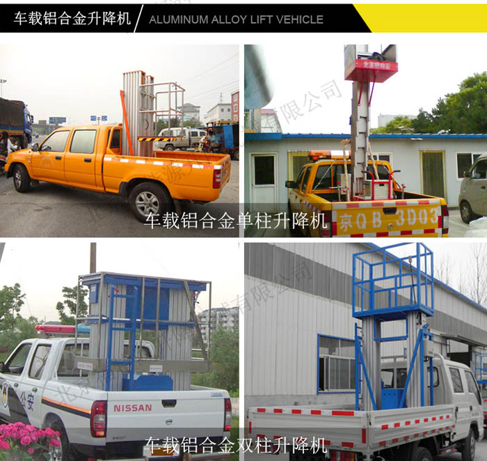 車載式升降機(jī)是為提高升降機(jī)的機(jī)動性,將升降機(jī)固定在電瓶搬運(yùn)車或貨車上,它接取汽車引擎動力,實(shí)現(xiàn)車載式升降機(jī)的升降功能。以適應(yīng)廠區(qū)內(nèi)外的高空作業(yè)。 廣泛應(yīng)用于賓館、大廈、機(jī)場、車站、體育場、車間、倉庫等場所的高空作業(yè);也可作為臨時(shí)性的高空照明、廣告宣傳等。