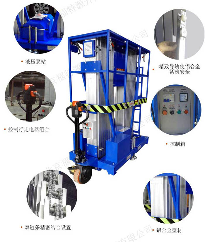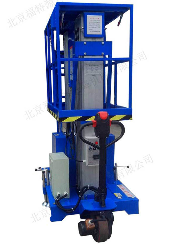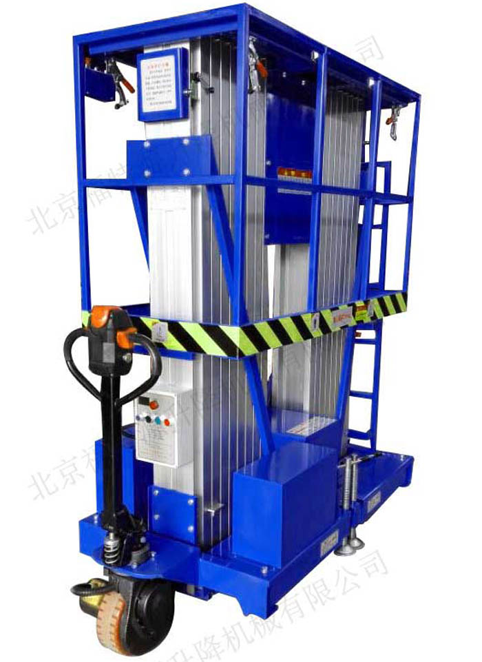鋁合金式升降機是一種升降機,采用高強度優質鋁合金材料,具有造型美觀、體積小、重量輕、運轉靈活,推行方便。升降平穩、安全可靠等優點。它輕盈的外觀,能在極小的空間內發揮高的舉升能力。廣泛用于工廠、賓館、餐廳、車站、影劇院、展覽館等場所,是保養機具、油漆裝修、調換燈具、電器、清潔養等用途的安全伴侶。